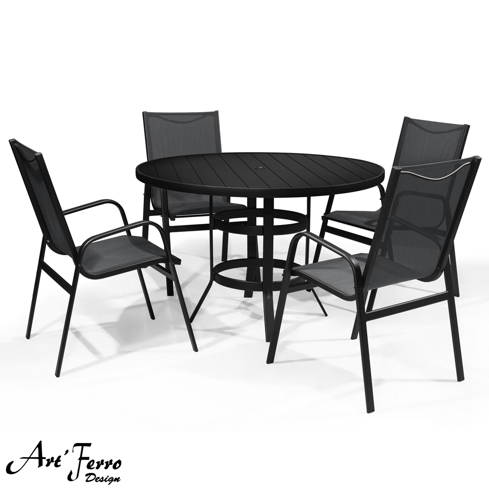 A mesa redonda acrescenta um toque de sofisticação à sua área externa. E as cadeiras são fabricadas com materiais resistentes, projetada para suportar os rigores do ambiente externo, garantindo uma longa vida útil sem comprometer o conforto. Sua estrutura robusta assegura estabilidade e segurança, enquanto o revestimento especial protege contra os efeitos adversos do sol, chuva e umidade.